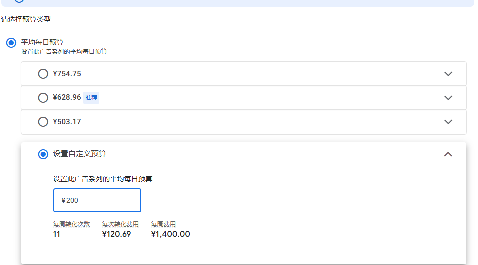 2. 广告预算:Google收取,你设定的每日预算 × 天数。