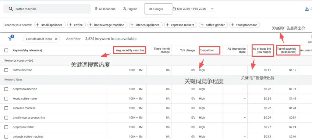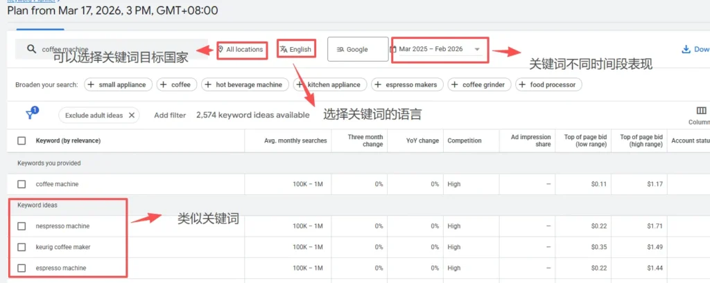 • 包含/不包含关键字:强制包含核心词(如“coffee”),排除无关词(如“免费”)。