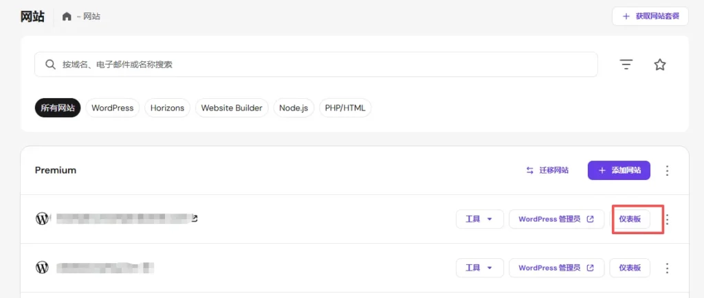 回到Hostinger后台,点击网站右侧的“仪表盘”,进入主机控制面板。